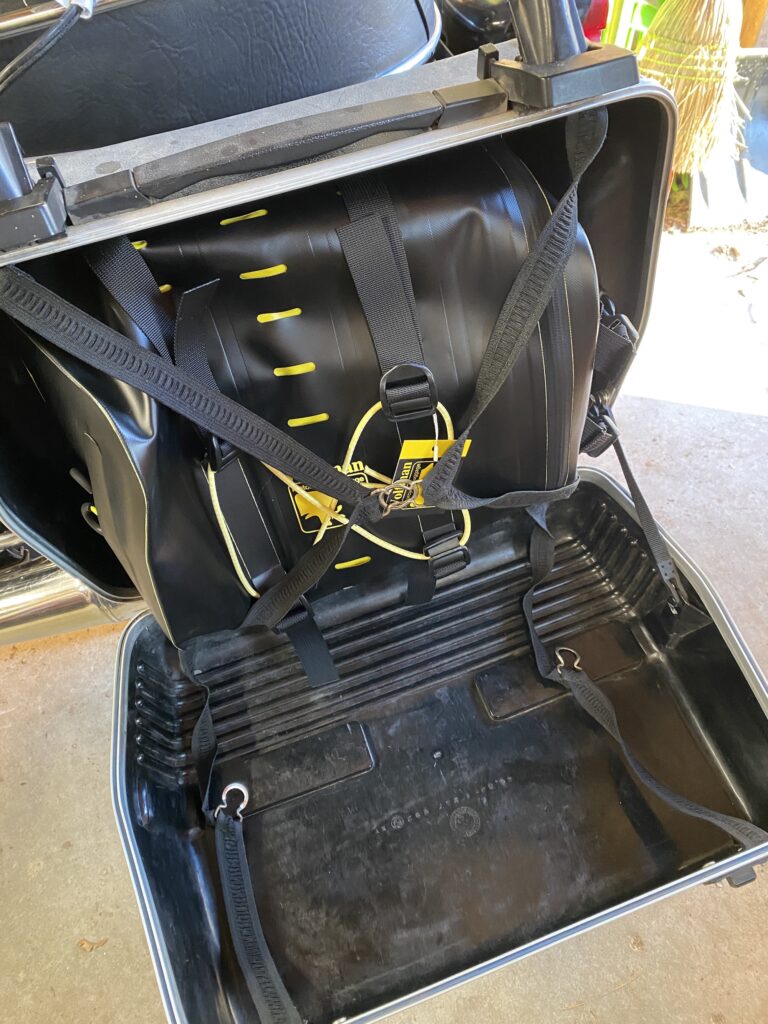 This waterproof (or at least highly water resistant) bag from Wolfman Luggage isn’t intended to be a side case liner, but it works well as one. I bought two of them on clearance!