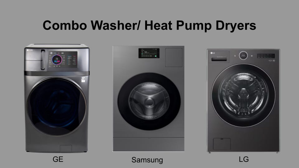 The three combo washer/heat pump dryers on the market made by GE, Samsung and LG.